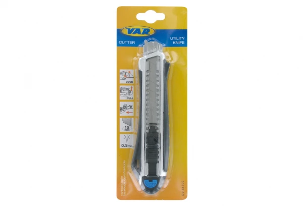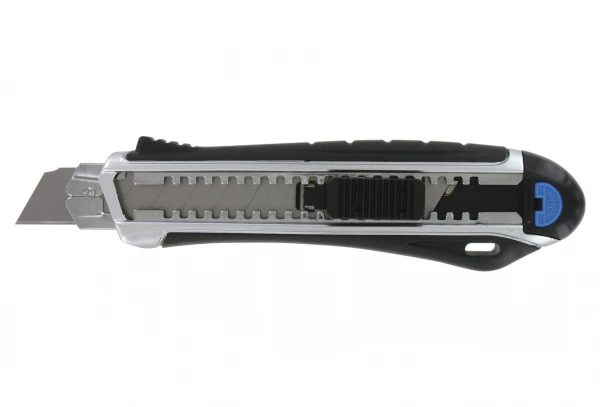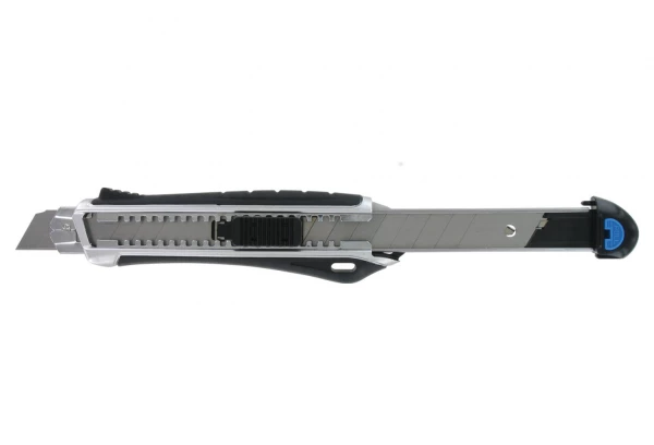 comprend 5 lames de 18 mm très tranchantes (4 lames de rechange dans un tiroir en acier) et une vis de blocage de la lame