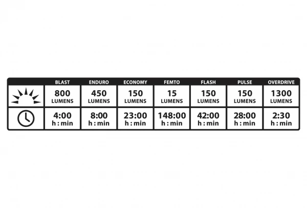 Le temps de recharge 15 heures 30 pour un maximum de 148 heures d’utilisation (en mode Femto). La charge se fait par micro-USB.