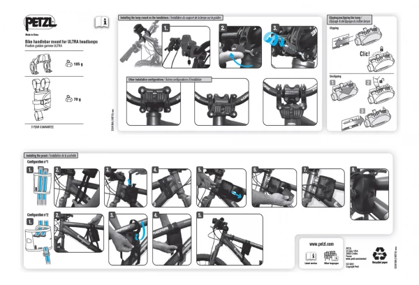 latines pour la fixation des lampes frontales DUO sur un guidon de vélo.