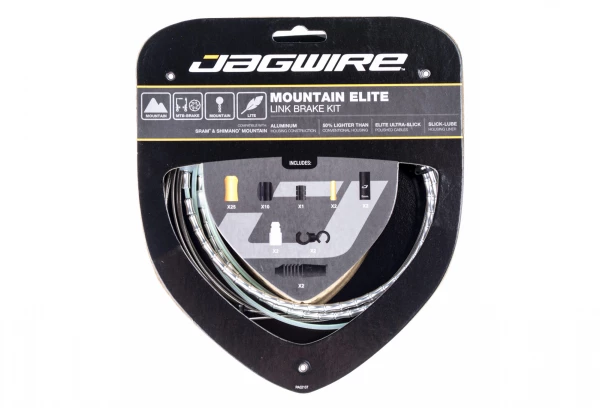 Le nouveau Jagwire Mountain Elite Link argenté empêche toute corrosion grâce à ses liens d’aluminium assemblés les uns dans les autres, le câble est lui-même entièrement protégé par une doublure interne étanche pour une durabilité maximum. Le kit est conçu pour améliorer la performance de votre freinage et apporter une touche de personnalisation à votre vélo.