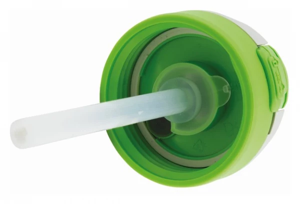 Bouchon pour boire Ă une main: Il suffit d’appuyer sur un bouton poussoir pour faire apparaĂ®tre le système Ă paille. Par aspiration, succion, vous buvez l’eau de votre gourde.