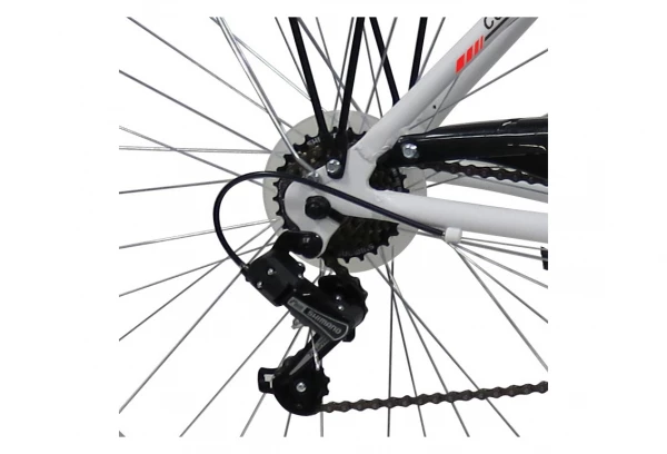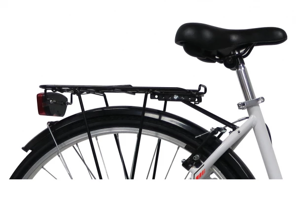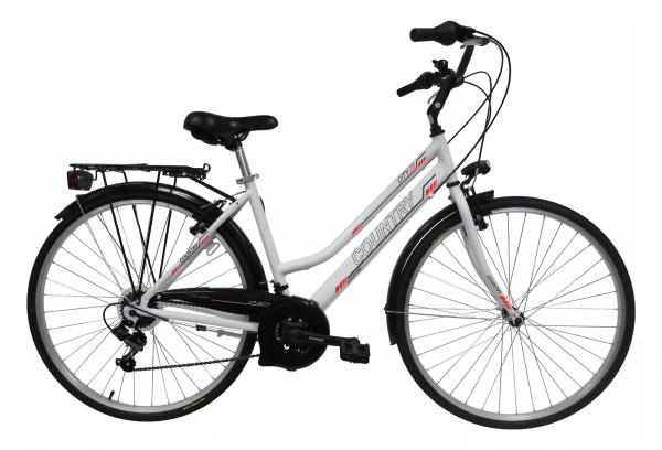 VTC 28” Country Femme – Cadre alu rigide avec enjambement bas – Fourche rigide – 21 vitesses par poignĂ©es tournantes Revoshift Shimano – Freins avant et arrière V BRAKE avec Ă©triers et Leviers aluminium – DĂ©railleur arrière TY21 et avant Shimano TZ30 – Potence rĂ©glable – Jantes aluminium et pneus noirs – Gardes boue – Porte bagages – BĂ©quille – Carter – Selle confort – Sonnette – Eclairage Ă piles fournies