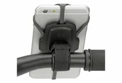 Le smartphone est maintenu solidement sur une grande base rembourrée.