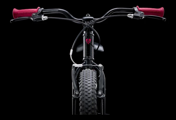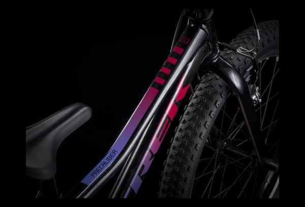 À l’instar de tous les vélos Precaliber, le cadre est rabaissé, ce qui permet aux enfants de poser les deux pieds au sol ou de monter sur le vélo ou d’en descendre facilement.